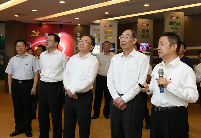 7月10日,中共中央書記處書記、中央統戰部部長尤權來錫,深入民營企業調研非公經濟發展情況。他強調,要堅持以習近平新時代中國特色社會主義思想為指引,把鼓勵、支持、引導民營經濟發展的政策落地落實,促進非公有制經濟持續健康發展。省委常委、省委統戰部部長楊岳,省委常委、市委書記李小敏參加調研。當日下午,尤權來到紅豆集團,先后參觀了紅豆黨建館、紅豆男裝智慧門店、紅豆工業城、紅豆杉盆景育苗大棚等地。在紅豆黨建館,紅豆集團黨委書記、董事局主席兼CEO周海江向尤權介紹了紅豆創立現代企業制度+企業黨建+社會責任“三位一體”的中國特色現代企業制度,及企業黨建成果、企業發展等情況。