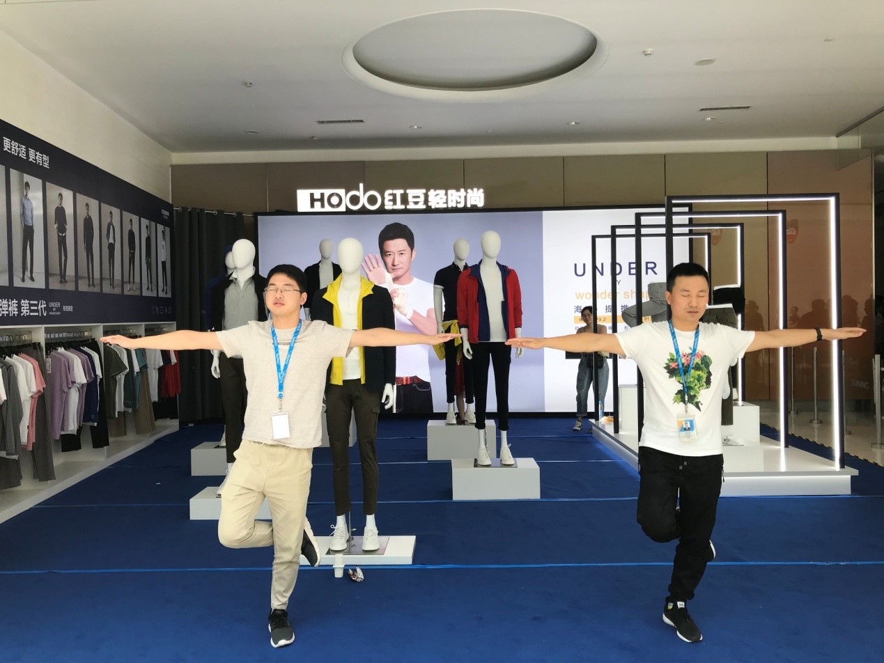新品發布,驚喜連連,紅豆快閃店也驚艷亮相蘇寧,快閃店以產品體驗為主,線上線下聯動,引爆七夕?,F場紅粉爭相體驗紅豆3D高彈褲等人氣產品,沒有親身加入深蹲挑戰的紅粉似乎還不過癮,又紛紛加入快閃店的體驗互動,閉眼10秒挑戰大鵬展翅,在現場又掀起了一波高潮。