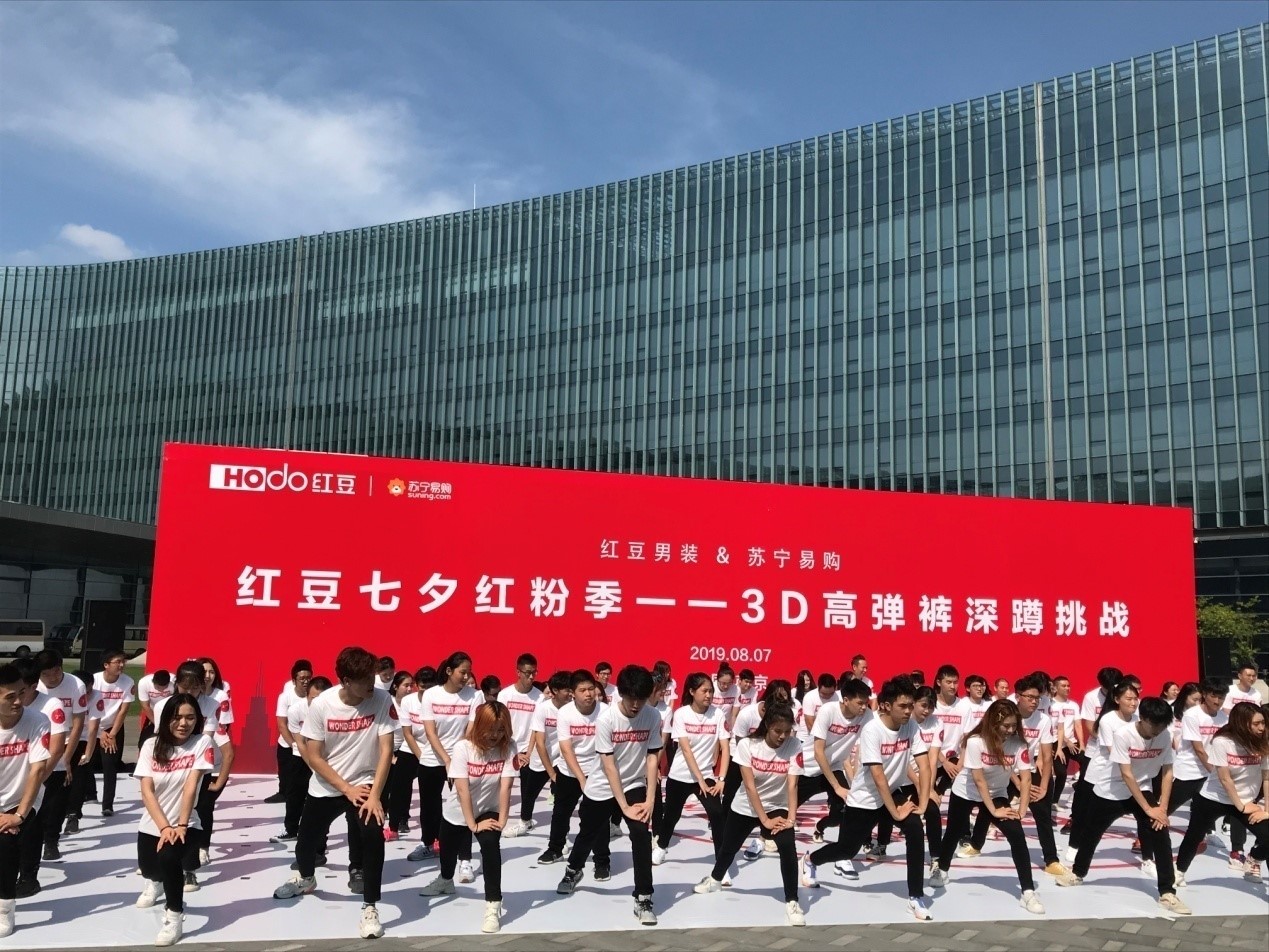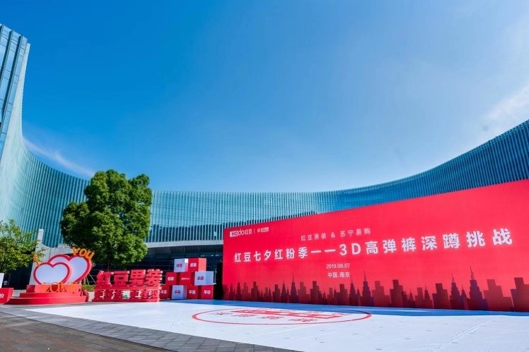 8月7日紅豆走進蘇寧,一場盛大的第三代紅豆3D高彈褲新品首發儀式在南京蘇寧總部啟動,紅豆與蘇寧強強聯手,在七夕當天聯袂獻上這份七夕大禮。