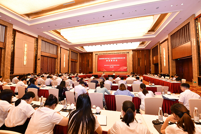 919日,全省紡織行業產業工人隊伍建設改革試點工作現場推進會,全省非公企業產業工人隊伍建設改革試點工作現場推進會在紅豆集團舉行。省產業工人隊伍建設改革聯席會議成員單位、各設區市總工會黨組書記等180多人參會。省總工會黨組書記、副主席,新時代江蘇產業工人隊伍建設改革聯席會議辦公室主任朱勁松出席會議并講話。紅豆集團黨委書記、董事局主席兼CEO周海江作為省產業工人改革試點企業代表作了典型經驗匯報,紅豆職業裝公司襯衫廠技術科科長、高級版郭軍偉作為優秀產業工人代表分享了成長經歷。