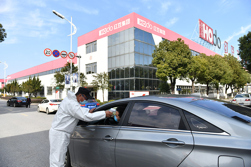 謝軍,是這次紅豆防護(hù)服生產(chǎn)大樓的安全生產(chǎn)負(fù)責(zé)人,也是一名退役軍人,他每天都要對(duì)進(jìn)入大樓的員工進(jìn)行排查,檢測(cè)好生產(chǎn)工人的體溫。每天早晨7點(diǎn),他已站在大樓門口,面對(duì)陸陸續(xù)續(xù)來上班的員工,謝軍和同事一起為每位準(zhǔn)備進(jìn)入的員工進(jìn)行體溫測(cè)量。從大年初二至今,謝軍便以廠為家,連續(xù)多日開展疫情防控工作,未曾回過家。近幾日,低于零下的冬季清晨,伴著刺骨的寒風(fēng),讓人忍不住打冷顫。