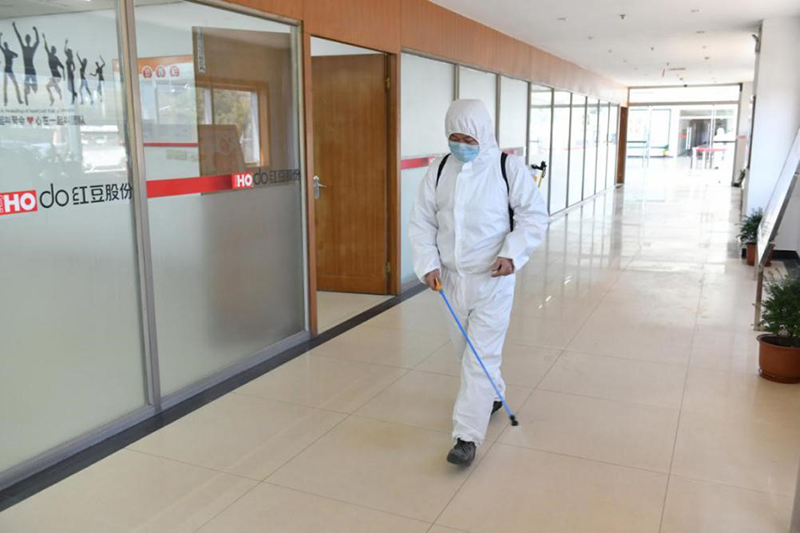 疫情期間,廠區(qū)的消毒任務(wù)是十分重要的。謝軍每天都背著噴霧器,不少于三次對(duì)工廠的各個(gè)角落進(jìn)行消毒。“每天背著這個(gè),感覺自己像是在給花澆水的園丁。”謝軍開玩笑的說。