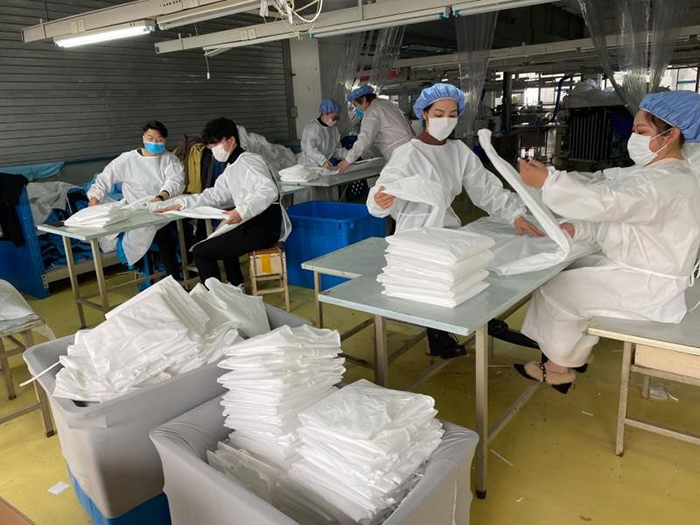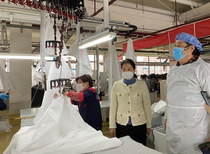 此次,我們終于能有機會,像一線工人一樣,身披防疫“鎧甲”,深入到車間和工人們一道,站在工作臺前,體驗“防護服”的制作工序,聆聽一直以來,奮戰(zhàn)在車間班組的優(yōu)秀黨員干部們,動情講述他們的艱辛轉(zhuǎn)型,轉(zhuǎn)產(chǎn)經(jīng)歷,講述他們?nèi)杖找挂沟念B強付出,講述她們無怨無悔的奉獻故事。
