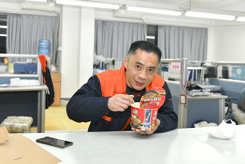 紅豆轉產(chǎn)防疫物資以來,吳曉東已記不清自己多少次凌晨回家,從春節(jié)假期返廠至今,一直堅守崗位已經(jīng)連續(xù)吃了一個多月的方便面,被同事們稱為“方便面”科長。