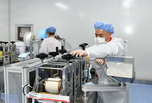 抗擊新冠疫情仍處于關鍵期,口罩作為一線醫(yī)護、企業(yè)復工、民眾出行的必備品,需求量仍暴增。3月3日凌晨3點,剛剛運送到紅豆口罩生產(chǎn)車間的兩套全自動口罩生產(chǎn)設備,在經(jīng)歷了幾小時的安裝、調試后,順利開工,保守預計日產(chǎn)可達10萬只。看著一片片從全自動口罩機上飛速下來的潔凈口罩,“金牌”調試員、紅豆運動裝公司技術科科長吳曉東,也被同事戲稱為“方便面”科長的他長舒一口氣,揉了揉早已酸澀的雙眼,準備下班。