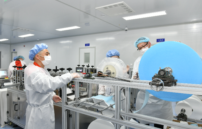 他說,剛開始心里也沒底,畢竟沒有搞過,在和小伙伴們一起研究、反復摸索后總算有了門道。吳曉東介紹,在半自動生產(chǎn)過程中,口罩面罩的生產(chǎn)由機器完成,再由人工熔接耳帶;全自動生產(chǎn)過程中,無紡布、熔噴布、鼻梁架、耳帶線等原材料只需放在對應位置上即可,不再需要其他工序。在這些過程中,機器的精確程度都影響著次品率。長途運輸、稍有不慎,一個螺絲的松動、一個刀口的裂紋都會影響口罩面罩的切縫、鼻梁架的位置偏移,而調試工作就是讓這些機器盡可能嚴絲合縫,從而發(fā)揮最大效能。同樣面對陌生的設備,吳曉東憑借自身學習經(jīng)驗和對機械的興趣與鉆研,不斷與新設備磨合,在一次次糾正和摸索中,屢屢找出最佳解決方案。口罩全自動生產(chǎn)過程中,一條生產(chǎn)線出現(xiàn)了切不斷面罩的問題,吳曉東第一時間趕到現(xiàn)場,認真校準、仔細判斷,直到發(fā)現(xiàn)問題出在一片刀片上,只需替換即可。診斷設備的吳曉東看著沉著冷靜,其實心里也沒底,全憑經(jīng)驗摸黑前行,他坦言,最擔心生產(chǎn)前后道跟不上,不能保證產(chǎn)能,只能一點一點試、一點一點調,和時間賽跑,直到合格的面罩一片片從出口快速飛出、全部設備滿負荷生產(chǎn)。從剛開始的親自安裝調試,到后來指導技術人員安裝調試口罩生產(chǎn)線,吳曉東獲得了車間管理人員和工人的一致贊譽,成為技術大師傅。