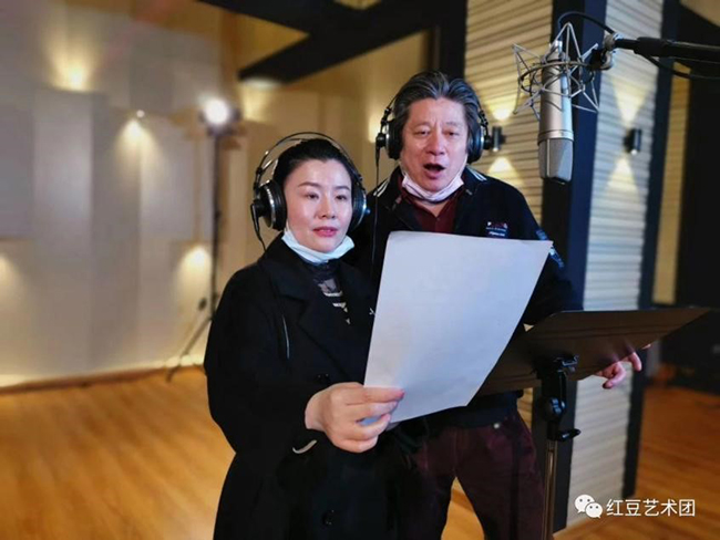 “伸出溫暖的手,獻上紅豆的愛……錫城與江城,牽手情更美,打贏抗疫阻擊戰,追夢一起飛!”紅豆藝術團原創戰“疫”歌曲《太湖長江情牽情》,由著名女高音歌唱家,國家一級演員陳明華與張波一同演唱,唱出了紅豆人勇于擔當,為徹底戰勝疫情貢獻“紅豆力量”的堅定信念。由于疫情的影響,錄制該歌曲時,沒有較好的錄制條件,陳明華老師與張波老師克服困難,成功預約到錄音棚,將戰疫歌曲演繹并第一時間“面世”。