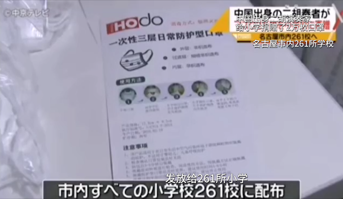 “這是我日本友人發(fā)來的視頻,紅豆口罩上了日本電視,而且還有紅豆LOGO的特寫鏡頭”紅豆外貿(mào)經(jīng)理在電話連線中介紹。據(jù)小編進(jìn)一步了解,原來是昨日日本名古屋電視中播了一則新聞:上午,中國出身的藝術(shù)大學(xué)教授、二胡演奏家張斌,給日本名古屋的小學(xué)捐贈(zèng)了2萬枚紅豆生產(chǎn)的愛心口罩,發(fā)放給名古屋市內(nèi)261所學(xué)校,讓學(xué)生們可以安心的參加畢業(yè)式。愛心捐贈(zèng)受到了日本中京電視臺的關(guān)注,媒體特別進(jìn)行了采訪報(bào)道,受到捐贈(zèng)的學(xué)校相關(guān)人員表示“十分感謝為孩子們準(zhǔn)備了店里已經(jīng)脫銷的口罩!”