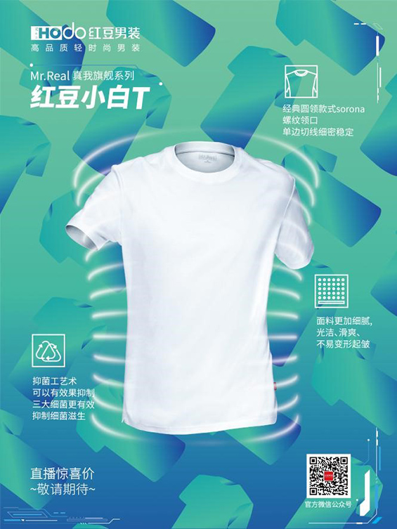 紅豆男裝的夏季新款小白T,時尚耐穿,是夏季男士的必備單品。小白T精選優質純棉面料,經過特殊工藝處理后,面料吸濕排汗功能非常強,貼身穿著可以給消費者帶來清涼體感。并且與眾不同的是,此款小白T還采用了德國魯道夫抑菌處理,可以有效抑制四大細菌:大腸桿菌、金黃色葡萄球菌、肺炎桿菌和白色念珠菌,真是一件環保又安全的T恤。