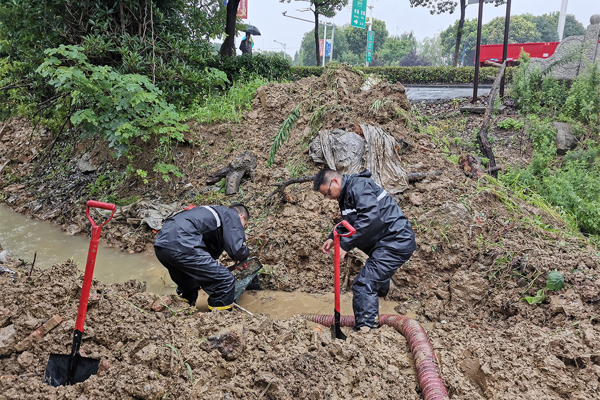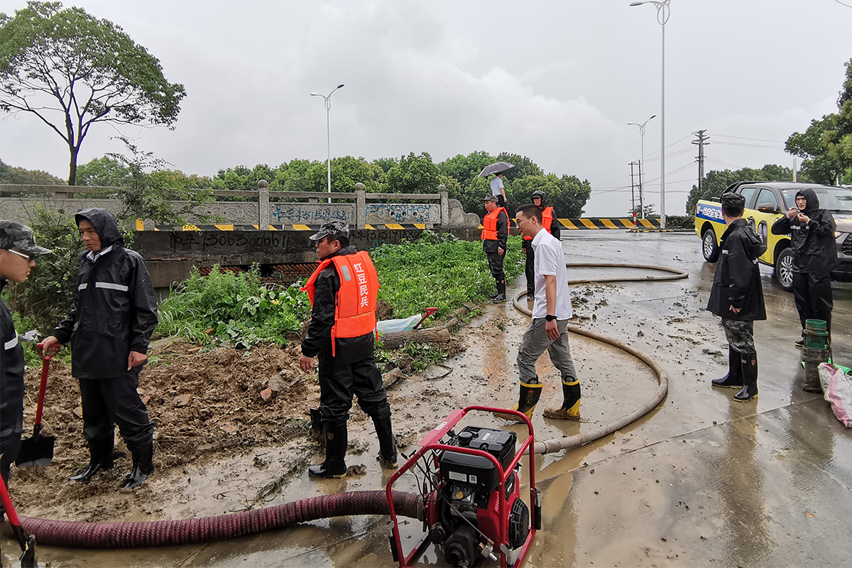 儀式之后,黨員突擊隊成員即刻前往村企統籌共建對象——山聯村,參加防汛救災工作。該村唐家巷和一金屬制品廠發生嚴重內澇,圍墻外圍積水一米多,突擊隊員迅速投入“戰斗”,裝沙袋、抽積水,經過半個多小時的奮戰,廠里內澇解除。