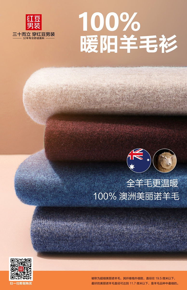 如今,紅豆男裝重新定位,打造舒適男裝國民品牌,聚焦成熟男性消費群體,以衣為媒,將為三十而立的中國男性打造更舒適、活力、美好的生活方式。