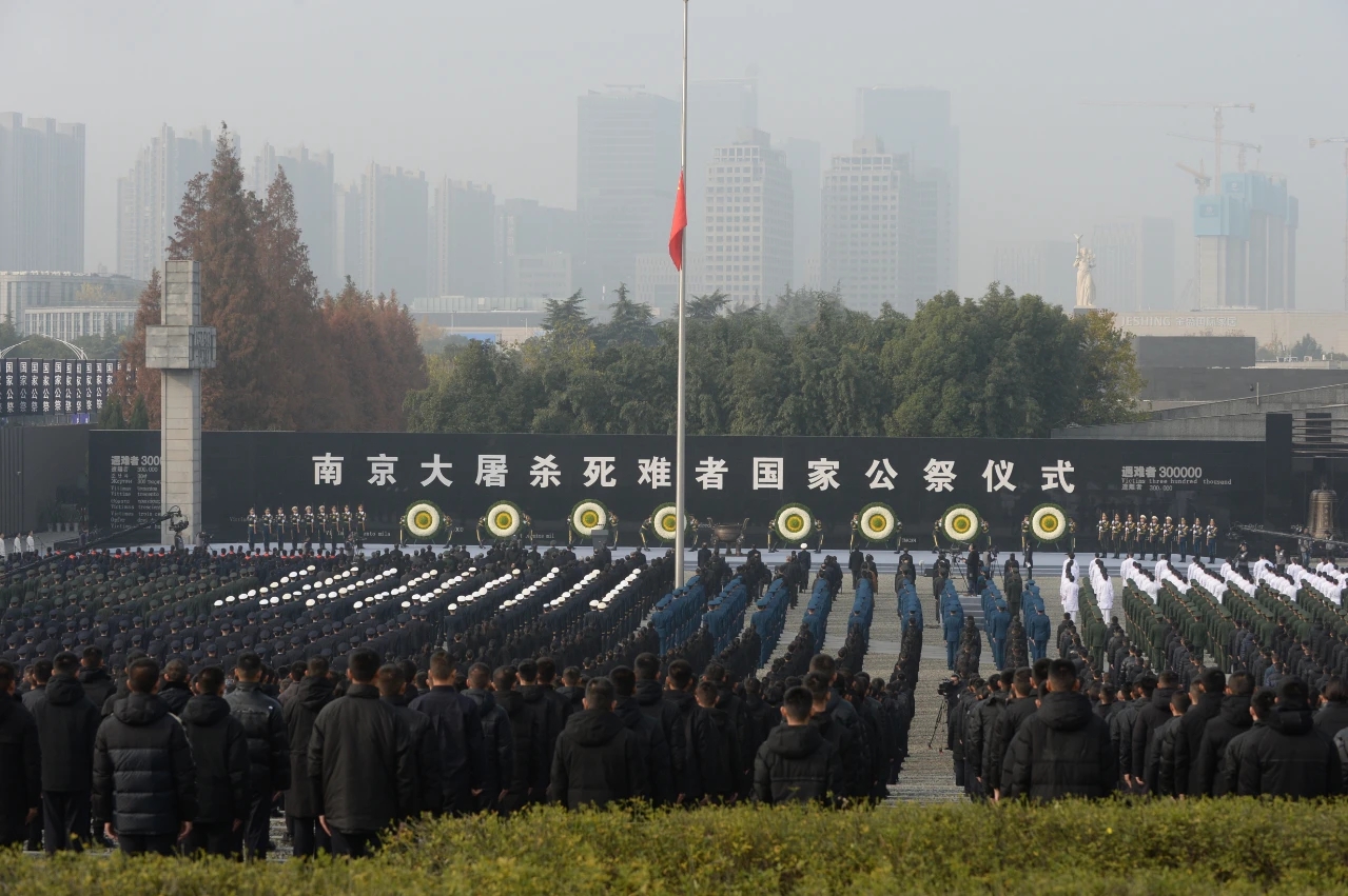 今日上午,2020年南京大屠殺死難者國家公祭儀式在侵華日軍南京大屠殺遇難同胞紀(jì)念館廣場隆重舉行。公祭儀式由全國人大常委會副委員長沈躍躍主持,中共中央政治局委員、中組部部長陳希出席并講話。國務(wù)委員王勇、全國政協(xié)副主席鄭建邦和中央軍委委員、軍委政治工作部主任苗華出席。江蘇省委書記婁勤儉、省長吳政隆,參加過抗日戰(zhàn)爭的老戰(zhàn)士老同志代表,中央黨政軍群有關(guān)部門和東部戰(zhàn)區(qū)、江蘇省、南京市負(fù)責(zé)同志,各民主黨派中央、全國工商聯(lián)負(fù)責(zé)人和無黨派人士代表,南京大屠殺幸存者及遇難同胞親屬代表,國內(nèi)相關(guān)主題紀(jì)念(博物)館、有關(guān)高校和智庫專家、宗教界代表,駐寧部隊官兵代表,江蘇省各界群眾代表等參加公祭儀式。紅豆集團(tuán)黨委書記、董事局主席周海江作為企業(yè)家代表受邀參加了此次公祭儀式。