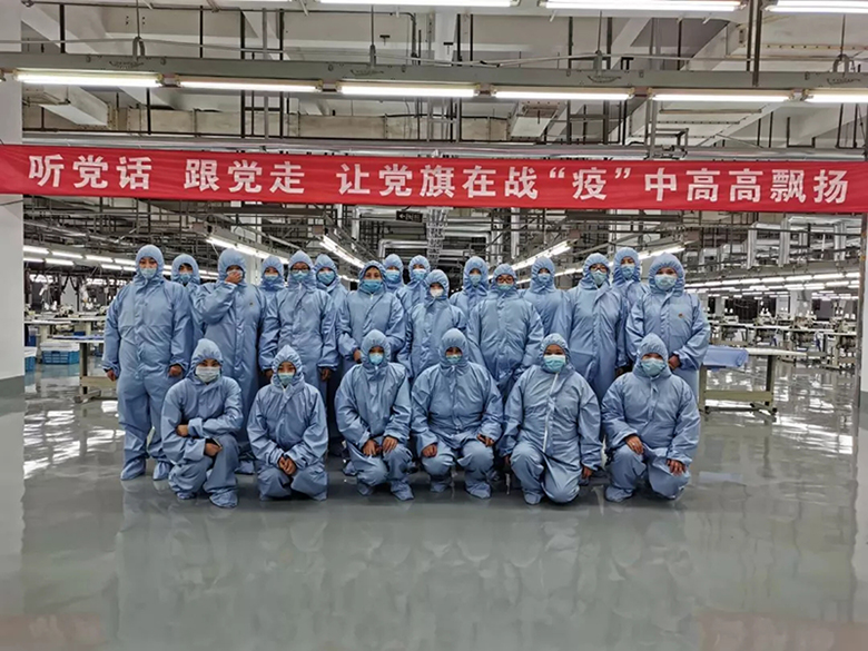 做大了的紅豆,不忘擔(dān)當(dāng)和使命。在這次抗疫中,紅豆集團黨委書記、董事局主席周海江第一時間捐款1000萬元個人特殊黨費,是全國第一個捐款一千萬元特殊黨費的民營企業(yè)家。當(dāng)時,戰(zhàn)疫前線隔離服、防護衣緊缺,了解到這一情況,周海江連夜成立“黨員突擊隊”,克服人員、原料、設(shè)備短缺等重重困難,夜日繼夜帶領(lǐng)大家改造生產(chǎn)線,轉(zhuǎn)產(chǎn)抗疫物資。為了最快速度購買到設(shè)備,突擊隊員奔赴深圳,吃住在車上;當(dāng)時正值春節(jié)員工放假,生產(chǎn)線上的員工都回家,沒有人怎么生產(chǎn)?“我干過裁剪,我上!”“我干過縫紉機,我上!”黨員干部紛紛請戰(zhàn),24小時不停工,連日連夜加班加點生產(chǎn)防護服隔離衣等緊缺的防疫物資。每天早晨七點鐘準(zhǔn)時發(fā)車,為前線送防疫物資。在2月份,疫情最緊張的時候,紅豆送到武漢前線65萬件隔離衣。