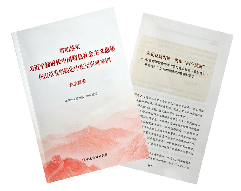 據新華社北京7月22日報道,中央組織部組織編選的“貫徹落實習近平新時代中國特色社會主義思想、在改革發展穩定中攻堅克難案例”叢書,近日由黨建讀物出版社出版發行。紅豆集團的黨建工作經驗光榮入選其中的《黨的建設》本,該書共選30個單位的案例,紅豆集團是唯一的民營企業。
