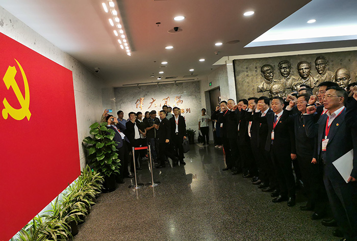 作為此次研討學(xué)習(xí)的一項(xiàng)重要內(nèi)容,開(kāi)班式后,全體學(xué)員集體瞻仰中共一大會(huì)址,回顧黨的歷史,汲取奮進(jìn)力量。周海江作為領(lǐng)誓人,帶領(lǐng)大家重溫了入黨誓詞。一大會(huì)址是中國(guó)共產(chǎn)黨人的精神家園,紀(jì)念館內(nèi)陳列的革命文物、圖文資料及群像浮雕等一一講述著中國(guó)共產(chǎn)黨誕生的故事。學(xué)員們一路參觀、一路聆聽(tīng),追尋中國(guó)共產(chǎn)黨的鏗鏘足跡,感悟共產(chǎn)黨人的初心使命和不朽的革命精神,深刻領(lǐng)悟習(xí)近平總書記的殷切教誨“走得再遠(yuǎn)都不能忘記來(lái)時(shí)的路”,銘記黨的奮斗歷程時(shí)刻不忘初心,擔(dān)當(dāng)黨的崇高使命矢志永遠(yuǎn)奮斗。